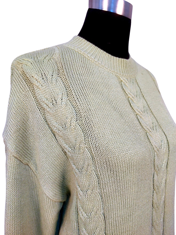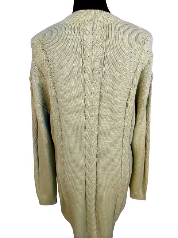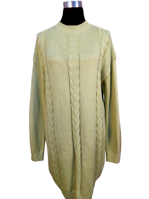 Tunic Dress - No Collar, Round neckline, Regular shoulder, Plain Long sleeve - Green - M