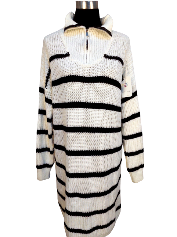 Tunic Dress - No Collar, Turtleneck neckline, Regular shoulder, Plain Long sleeve - Ivory - XL