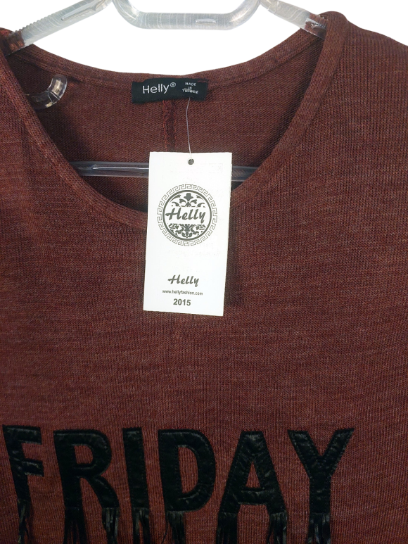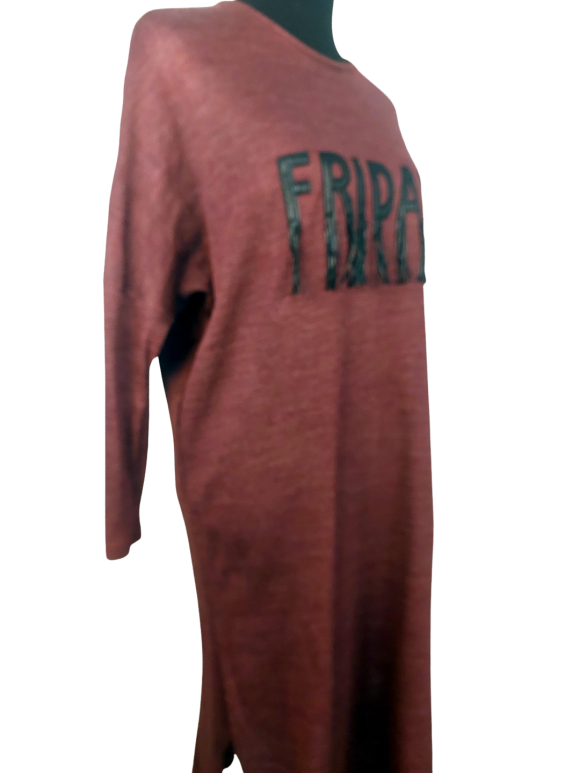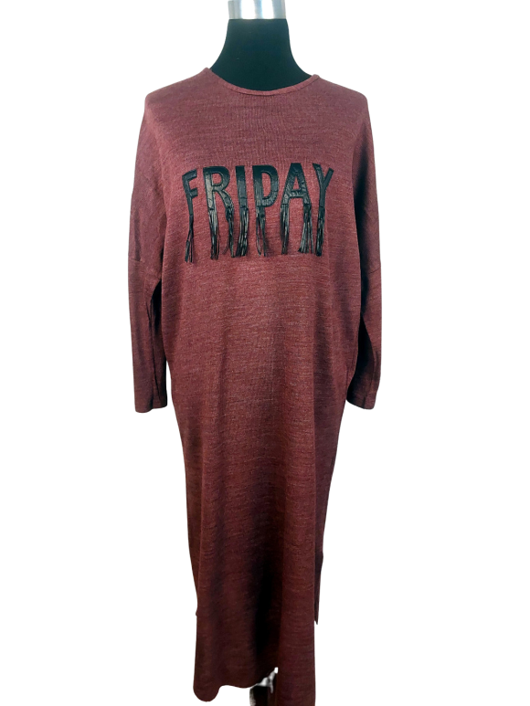 Tunic Dress - No Collar, Round neckline, Regular shoulder, Plain Long sleeve - Burgundy - M/L