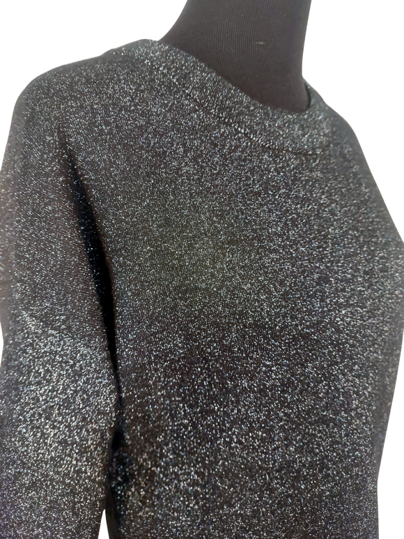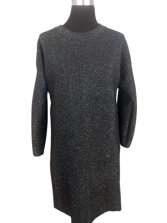 Tunic Dress - No Collar, Round neckline, Regular shoulder, Plain Long sleeve - Black - XL