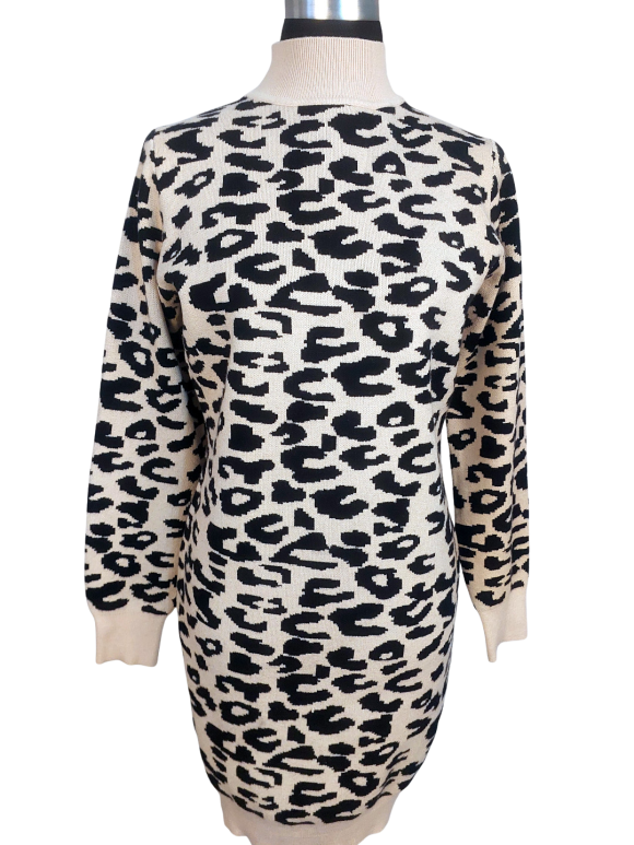 Bodycon Dress - No Collar, Round neckline, Regular shoulder, Plain Long sleeve - Tan - L