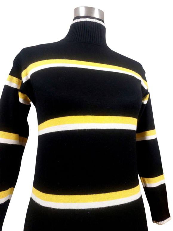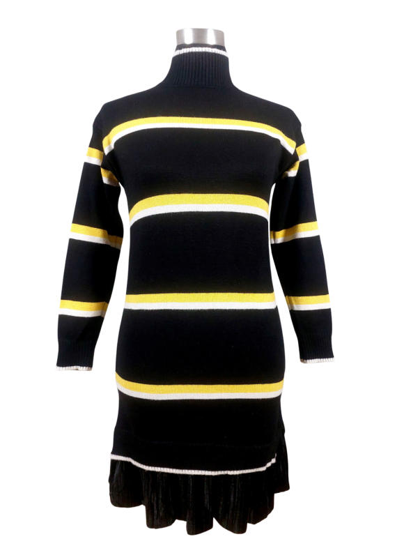 Tunic Dress - No Collar, Turtleneck neckline, Regular shoulder, Plain Long sleeve - Black - S