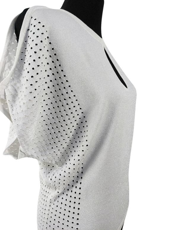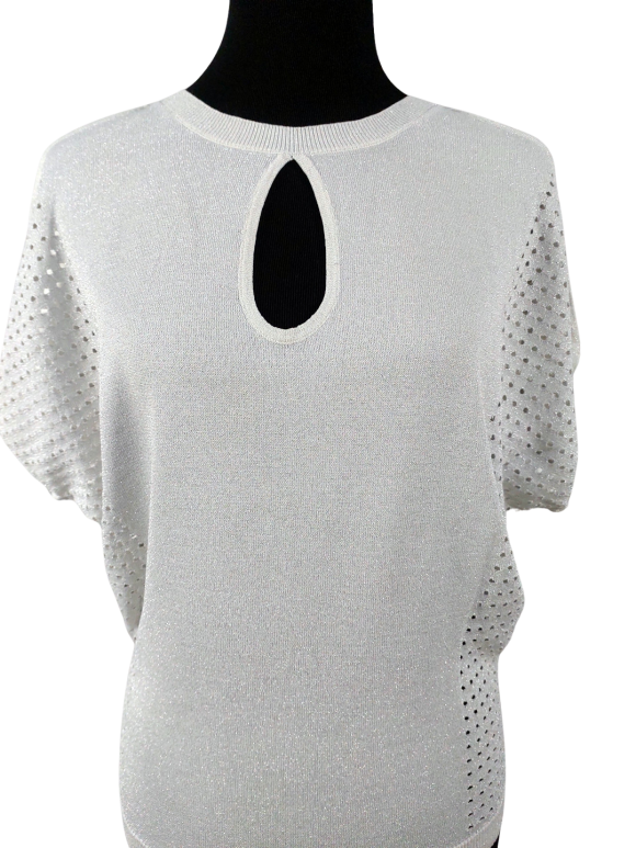 Pullover Sweater - No Collar, Round neckline, Strap shoulder, Batwing Short sleeve - White, Fits multiple sizes