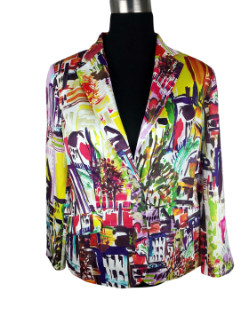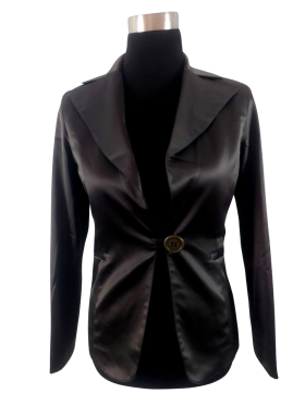 Blazer Jacket - No Collar, Round neckline, Regular shoulder, Plain Long sleeve - Black, S/M