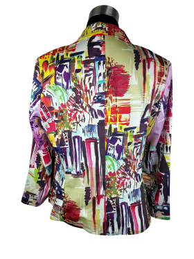 Blazer Jacket - Notched Collar, V-Shape neckline, Regular shoulder, Plain Long sleeve - Pink - M/L