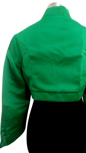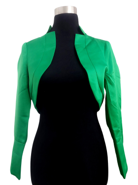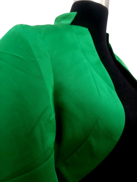 Blazer Jacket - No Collar, Square neckline, Regular shoulder, Plain Long sleeve - Green - S