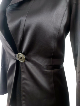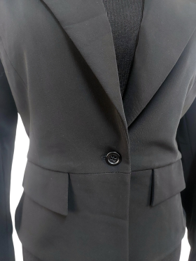 Blazer Jacket - Notched Collar, V-Shape neckline, Regular shoulder, Plain Long sleeve - Black, S