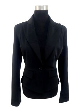 Blazer Jacket - Notched Collar, V-Shape neckline, Regular shoulder, Plain Long sleeve - Black, M