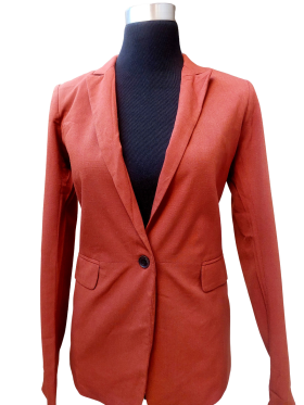 Blazer Jacket - Notched Collar, V-Shape neckline, Regular shoulder, Plain Long sleeve - Brown, S