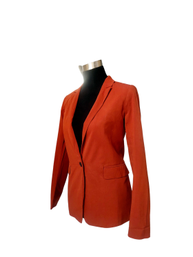 Blazer Jacket - No Collar, V-Shape neckline, Regular shoulder, Plain Long sleeve - Red, M