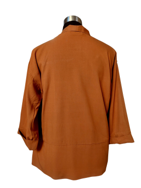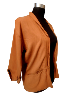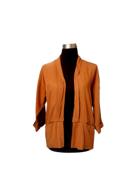 Blazer Jacket - With Collar, V-Shape neckline, Regular shoulder, Batwing Long sleeve - Brown, S