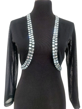Cardigan - No Collar, V-Shape neckline, Regular shoulder, Plain Short sleeve - Black - S