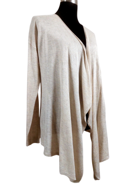 Cardigan - No Collar, V-Shape neckline, Regular shoulder, Plain Long sleeve - Tan - L/XL