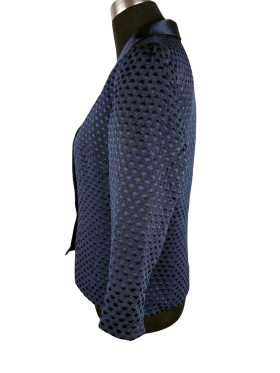 Blazer Jacket - With Collar, V-Shape neckline, Regular shoulder, Plain Long sleeve - Navy Blue, M