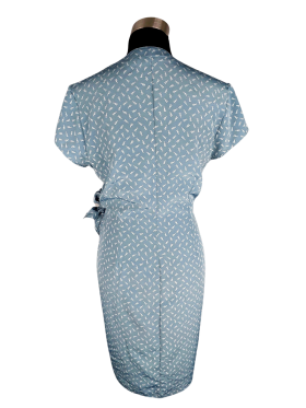 Blouson Dress - No Collar, Surplice (Wrap) neckline, Regular shoulder, Cap Short sleeve - Blue, M