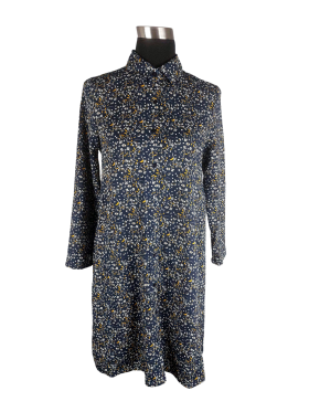 Tunic Dress - Classic Collar, V-Shape neckline, Regular shoulder, Plain Long sleeve - Navy Blue, M