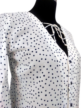 Blouse - Peter Pan Collar, Henley neckline, Regular shoulder, Sleeveless - White, XS