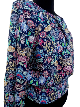 Blouse - No Collar, Round neckline, Regular shoulder, Plain Long sleeve - Navy Blue - M