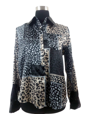Shirt - Classic Collar, V-Shape neckline, Regular shoulder, Plain Long sleeve - Brown - XS/S