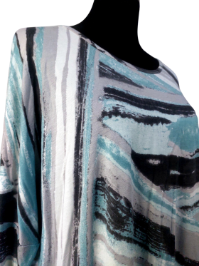 Oversized T-Shirt - No Collar, Round neckline, Regular shoulder, Batwing Long sleeve - Teal, XL/XXL
