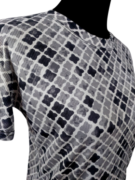 Relaxed T-Shirt - No Collar, Round neckline, Regular shoulder, Plain Short sleeve - Gray, S/M