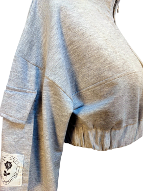 Sweatshirt - No Collar, Round neckline, Regular shoulder, Plain Long sleeve - Gray - S/M