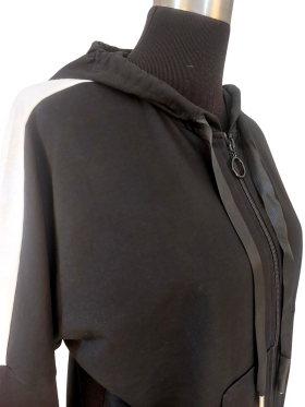 Sweatshirt - With Collar, V-Shape neckline, Regular shoulder, Plain Long sleeve - Black - M