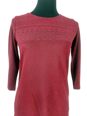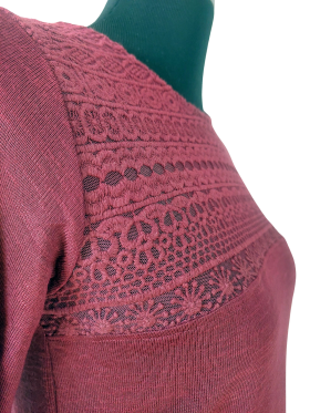 Pullover Sweater - No Collar, Round neckline, Regular shoulder, Plain Long sleeve - Burgundy, S