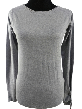 Pullover Sweater - No Collar, Boat neckline, Regular shoulder, Plain Long sleeve - Gray, S