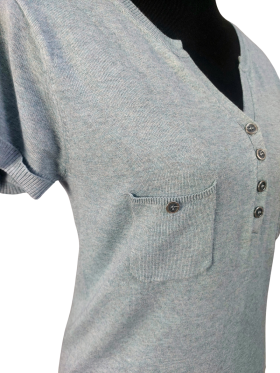 Pullover Sweater - No Collar, V-Shape neckline, Regular shoulder, Cap Short sleeve - Teal - S